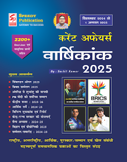 Speedy current affairs Book 2025 pdf में september 2024 से लेकर 01 august 2025 तक के करेंट अफेयर्स तक के विषयो को कवर किया गया है।